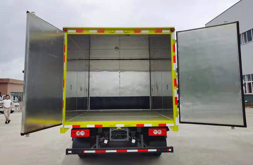 1、該車適用于運(yùn)輸危險(xiǎn)品。廂體頂部封閉,不可開啟。該車用于運(yùn)輸具有**容器(瓶)包裝的爆炸品。類項(xiàng)號(hào):1.1B,1.1G,1.3C,1.1D,1.2D,1.3C,1.1C,1.4G。2、側(cè),后防護(hù)材料均為Q235,螺栓連接;后防護(hù)截面尺寸**×50mm。下邊緣離地高410mm。廂體側(cè)面選裝開門型式及位置,選裝不帶側(cè)開門,選裝瓦楞板結(jié)構(gòu);廂體側(cè)面板選裝開百葉窗。3、隨底盤選裝排半駕駛室,選裝導(dǎo)流罩。僅選用排氣管前置、限速裝置(限速80km/h)、前輪盤式制動(dòng)及子午線輪胎的底盤;轉(zhuǎn)向輪裝備輪胎爆胎應(yīng)急防護(hù)裝置。安裝帶衛(wèi)星定位功能的行駛記錄儀。ABS系統(tǒng)型號(hào):ABS-VI.E;生產(chǎn)企業(yè):廣州瑞立科密汽車電子股份有限公司.ABS系統(tǒng)型號(hào):ABS-E;生產(chǎn)企業(yè):威伯科汽車**系統(tǒng)(**)有限公司。發(fā)動(dòng)機(jī)/油耗值(L/**km)對(duì)應(yīng)關(guān)系為:CY4SK261/16.09,D30TCIF1/16.19,F2.8NS6B156/15.39,F3.8NS6B156/14.90,Q28-130E60/16.14??蛇x裝ETC車載裝置。
