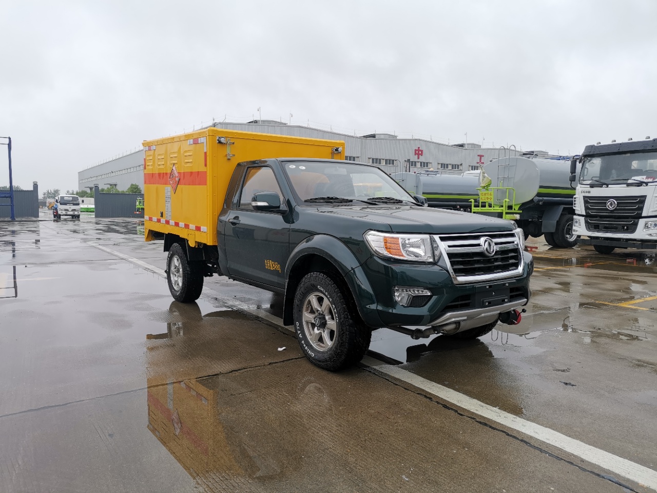 廂體頂部封閉,不可開(kāi)啟;廂體可選裝無(wú)側(cè)門(mén);選裝不同形式的側(cè)開(kāi)門(mén);車(chē)身側(cè)面及后部粘貼橙色反光標(biāo)識(shí)和爆炸品菱形標(biāo)示,在車(chē)體后部設(shè)置安全標(biāo)示;危險(xiǎn)貨物運(yùn)輸車(chē)輛的車(chē)輛類型EX/Ⅱ;用于運(yùn)輸具有**包裝的黑火藥,壓縮黑火藥,硝胺炸藥,電引爆雷管,爆破炸藥,點(diǎn)燃導(dǎo)火索,專用煙火制品,類項(xiàng)號(hào):1.1D,1.1D,1.1B,1.1D,1.4G,1.1 D,1.1G;該車(chē)安裝具有衛(wèi)星定位功能的行駛記錄儀;ABS型號(hào):EV5010,EV5011;ABS生產(chǎn)廠:博世汽車(chē)部 件(蘇州)有限公司,博世汽車(chē)部件(蘇州)有限公司;發(fā)動(dòng)機(jī)**大凈功率**kW;僅用子午線輪胎,裝備限速裝置,前置式排氣管,排氣制動(dòng);前輪采用盤(pán)式制動(dòng);油耗對(duì)應(yīng)關(guān)系:ZD25T6(7.7) |