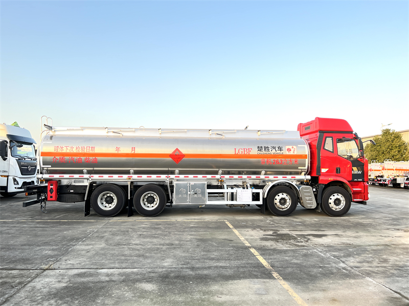 上裝配置: 嚴(yán)格按照公告尺寸罐體26.3方制作,2個歐標(biāo)罐口 、1個海底閥,帶1個下裝油口,1個油氣回收,1個防溢流探桿及靜電插座,右邊一個泵箱,帶折疊護(hù)欄、兩根罐體等長輸油管、兩個滅火器、一個防火帽。其余標(biāo)配,油漆:銀灰、貼反光條、反光帶、安全告示。